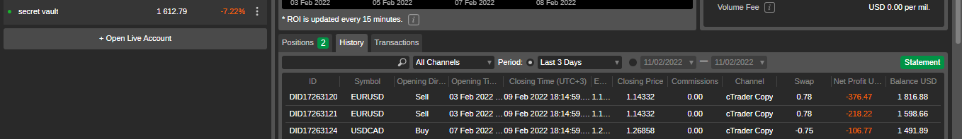 i have a strategy Named Secret vault. i trade using www.topfx.com.bm. my master account has been trading since last week. since monday, the master account had three running orders. on the master account i closed one order of USDCAD at 3.53 am. the first copying account 1032094 closed all the running orders at 18:14 on 9/2/2022 and picked new orders.