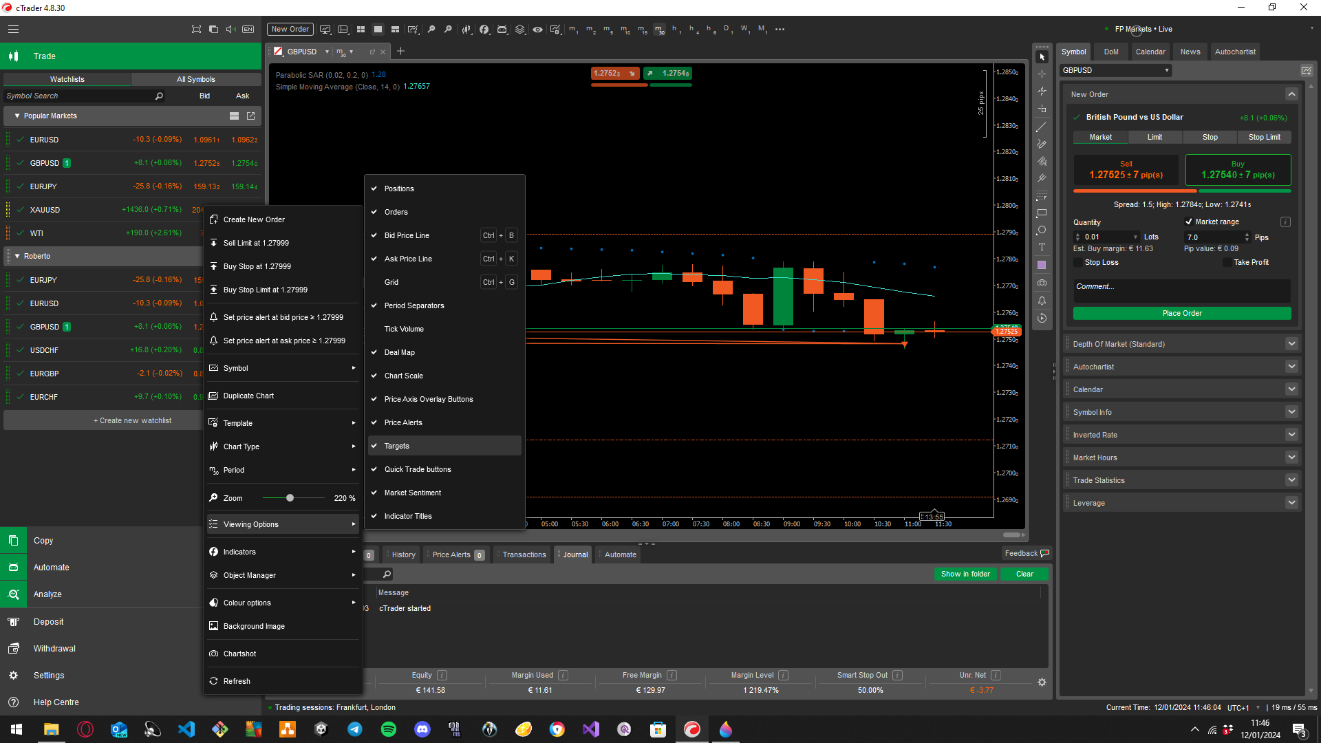 hi, here there is a screen of what I was talking about. I hope that you can help, the broker is FP market. In the sencond screen u can see the targets active in a demo account