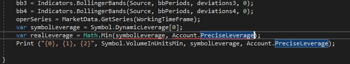var symbolLeverage = Symbol.DynamicLeverage[0]; var realLeverage = Math.Min(symbolLeverage, Account.Leverage);