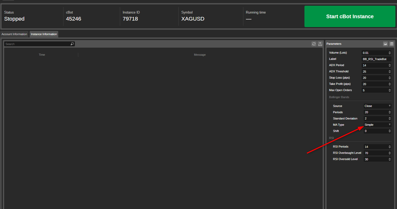 Hi. I am having problems, selecting the MA TYPE when running my bot in the cloud.