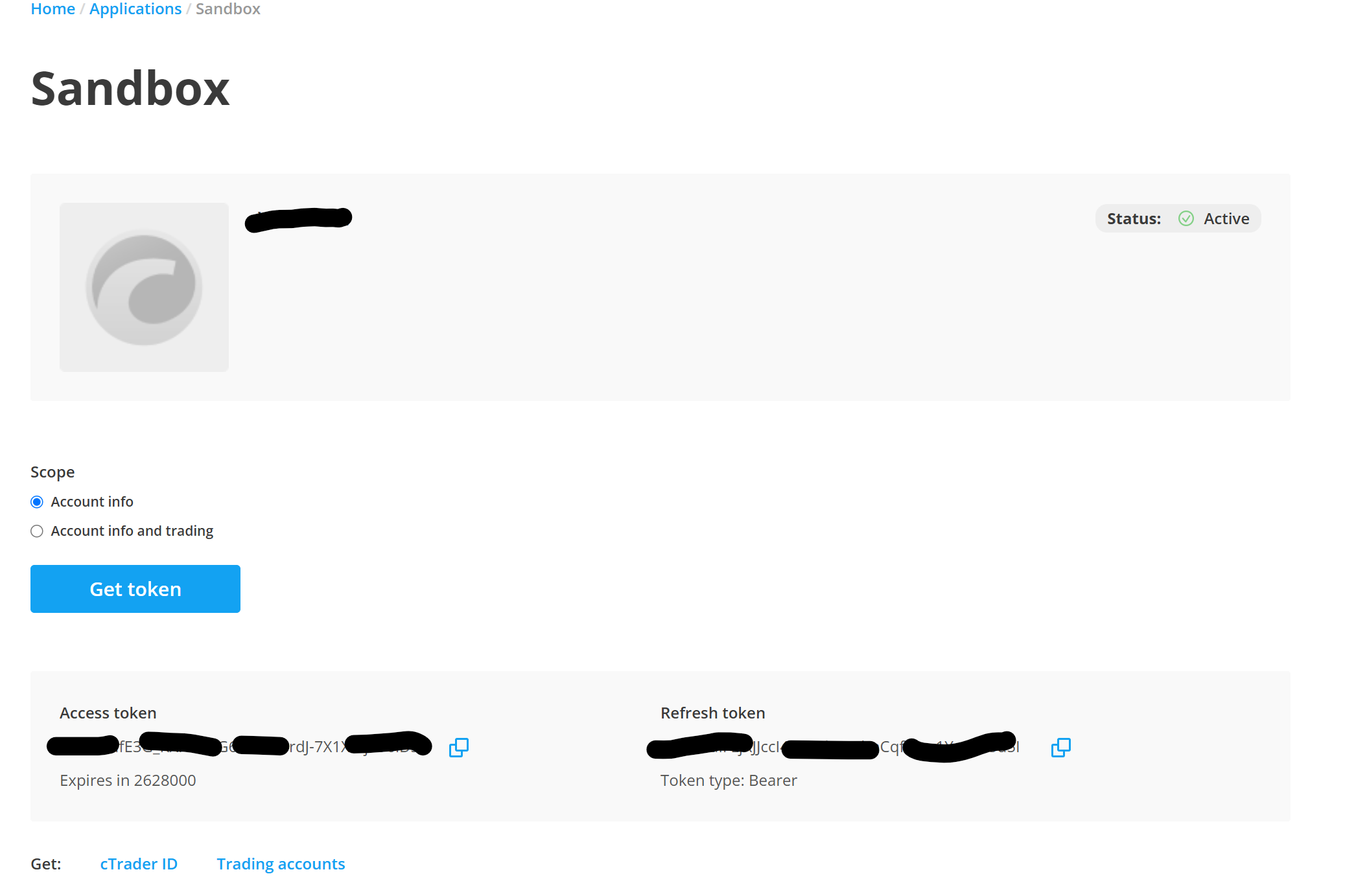 client_id, client_secret, and redirect_uri are all taken directly from my cTrader Open API application.