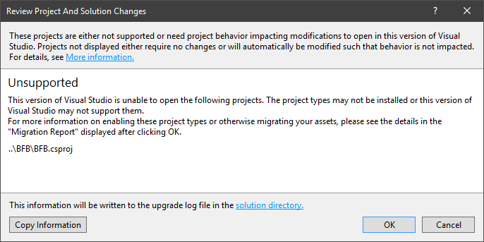 All of sudden when I try to open any new project in Visual Studio 2017 I'm having these support incompatible messages, I'm not sure if it's a cTrader issue or a VS issue, but it only happens with cBots and Indicators, so I'm requesting support here, below there's a pic.