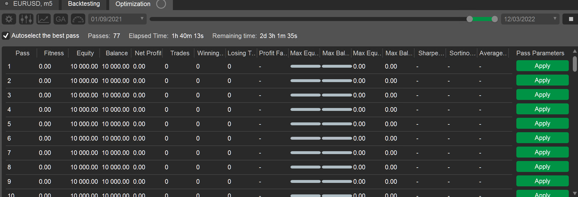 I am encountering an issue. Some optimizations works fine while others like this one shows no trades taken. But when I backtest it on the same period trades are taken. What could be the issue here? If cbot needed I can sent it to you via another canal not public. Thank you.