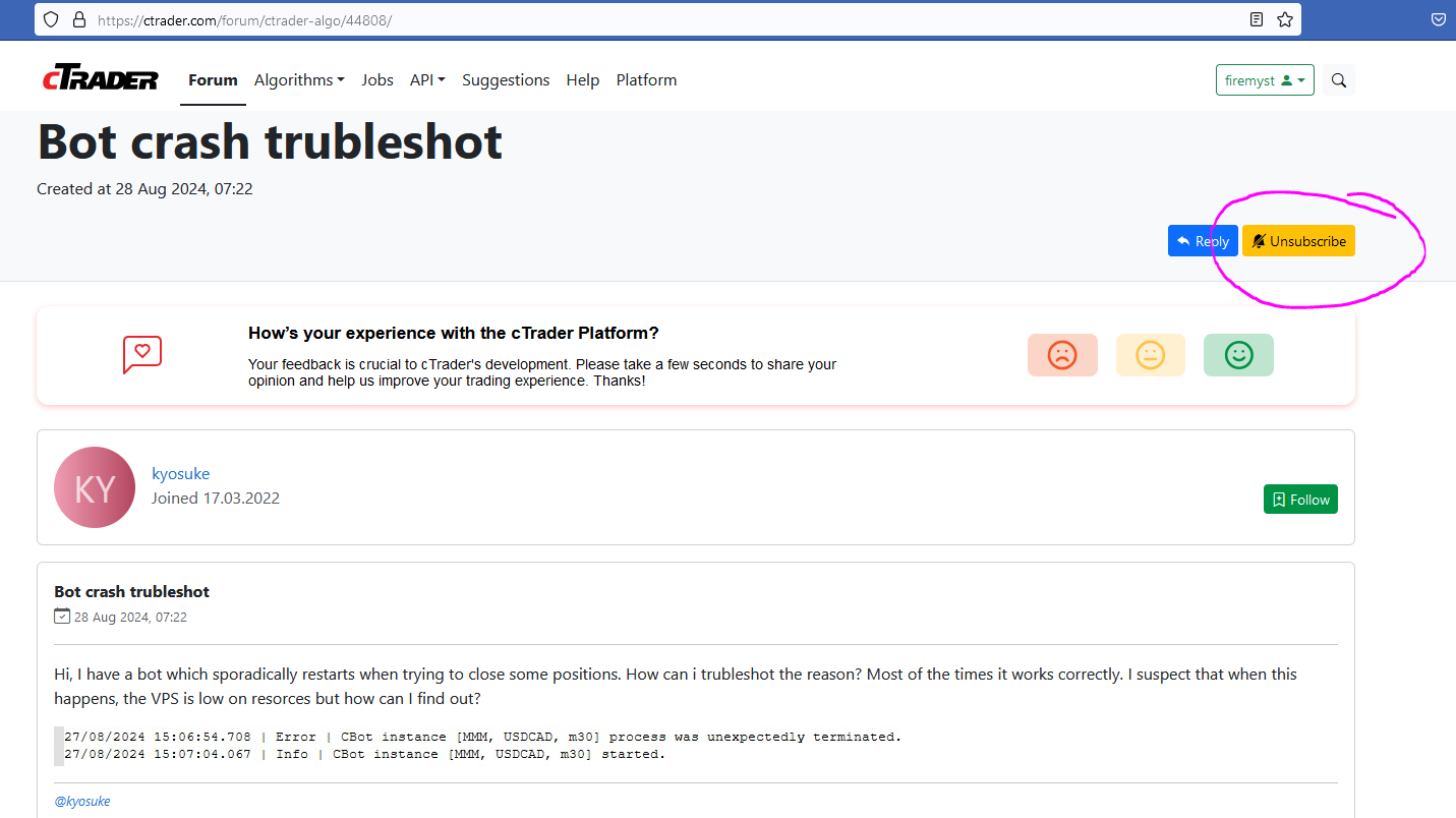 I am a bit confused. You said you “sent it from another user's cTrader”. So I am not sure from where exactly you sent the troubleshooting. Your troubleshooting is missing the cBot code. Can you please share it here?