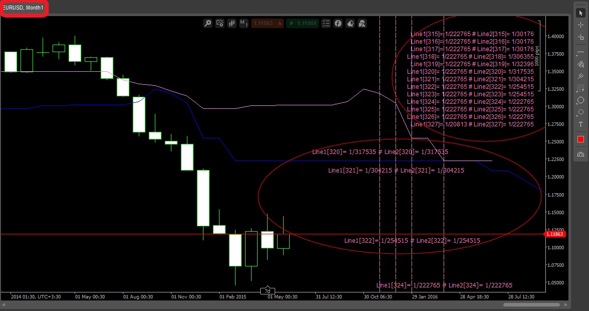When I use “ChartObjects.DrawText” code inside “FOR” and outside “IF” (Line 76), for example: Line1for candle No.320 has value =1.222765(as shown top right corner) that’s right! But the same value is 1.317535 on the chart! That it is for Line2 [320]!