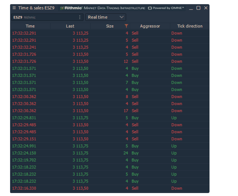 Doe's anyone know if cTrader offers Time and Sales window?What I mean is buy and sell positions,trade execution times,execution prices and volumes.Similar to the one below