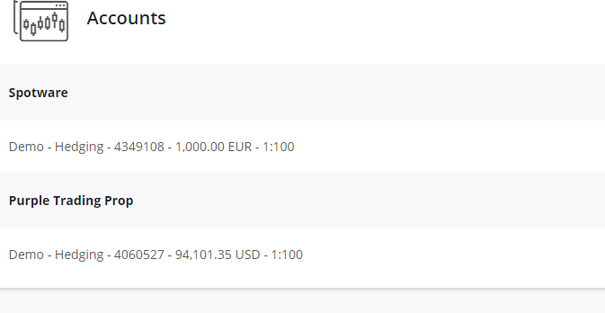 I have a prop challenge from Purple Trading Prop. I've been trading with it for weeks now and last week it dissapeared when I log on to cTrader web app, it only shows the demo account, not my prop firm account.