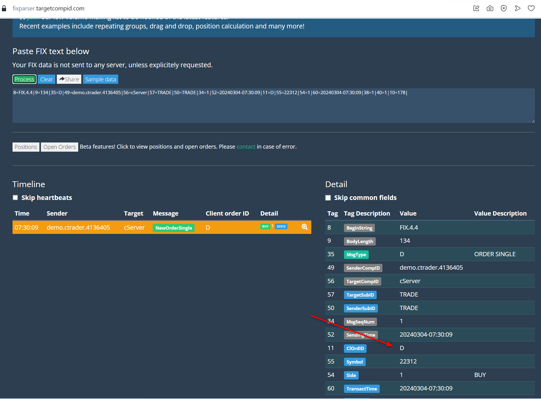 8=FIX.4.4|9=134|35=D|49=demo.ctrader.4136405|56=cServer|57=TRADE|50=TRADE|34=1|52=20240304-07:30:09|11=D|55=22312|54=1|60=20240304-07:30:09|38=1|40=1|10=178|So this is my message to buy a position.