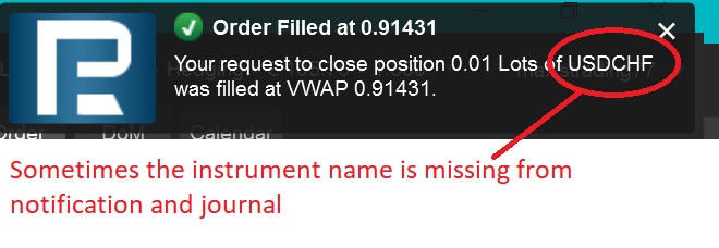 When a pending order is filled or an order is modified or closed the notification and journal does not always tell the instruments name (EUR/USD, XAUUSD, etc) but only the order ID, making difficult to identify which position has been modified. I think notifications are something you need to understand at a glance.